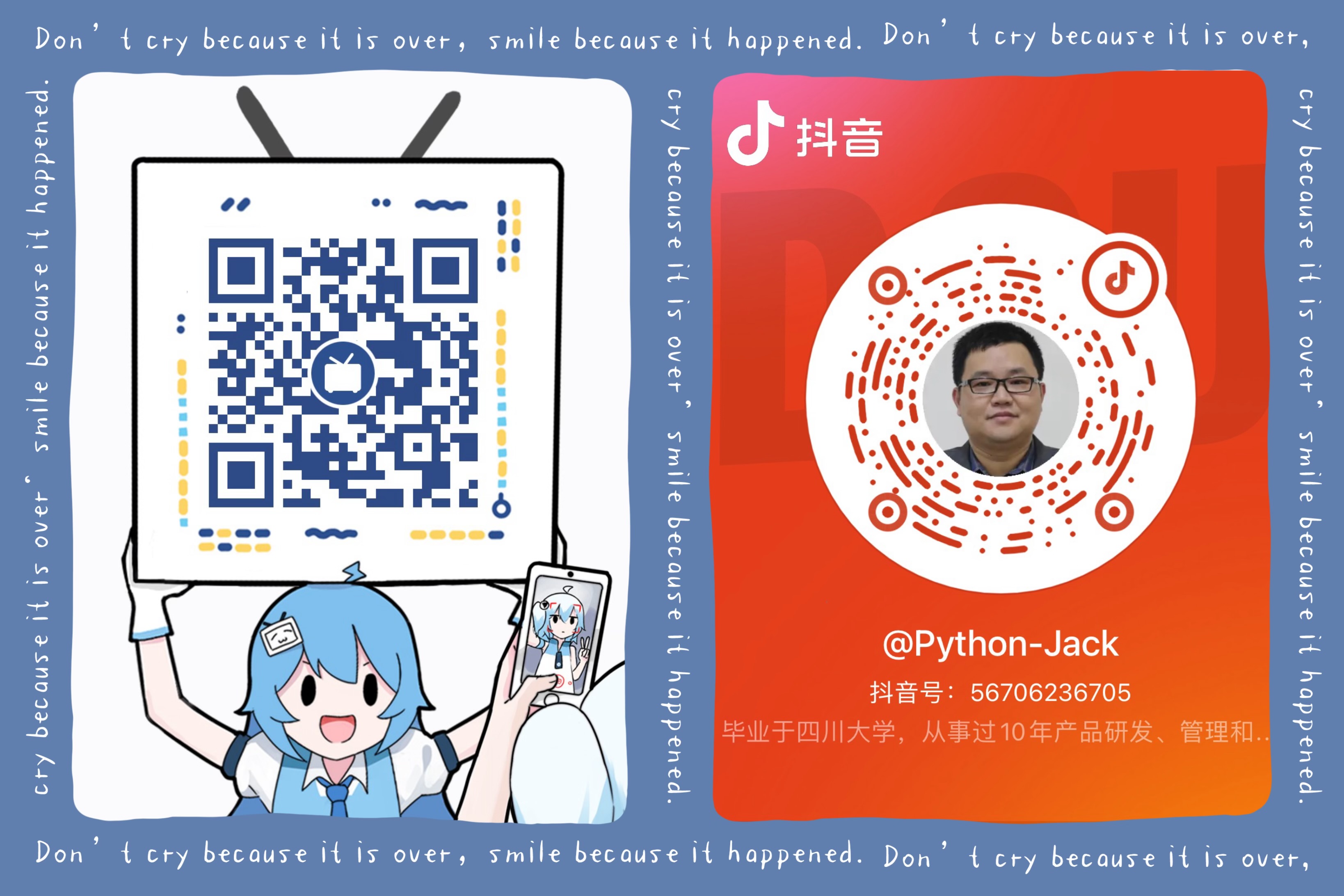 配套的视频在抖音和B站持续更新中,有兴趣的小伙伴可以关注我的抖音或B站账号,最近刚刚起号,还希望大家多多支持,非常感谢您!